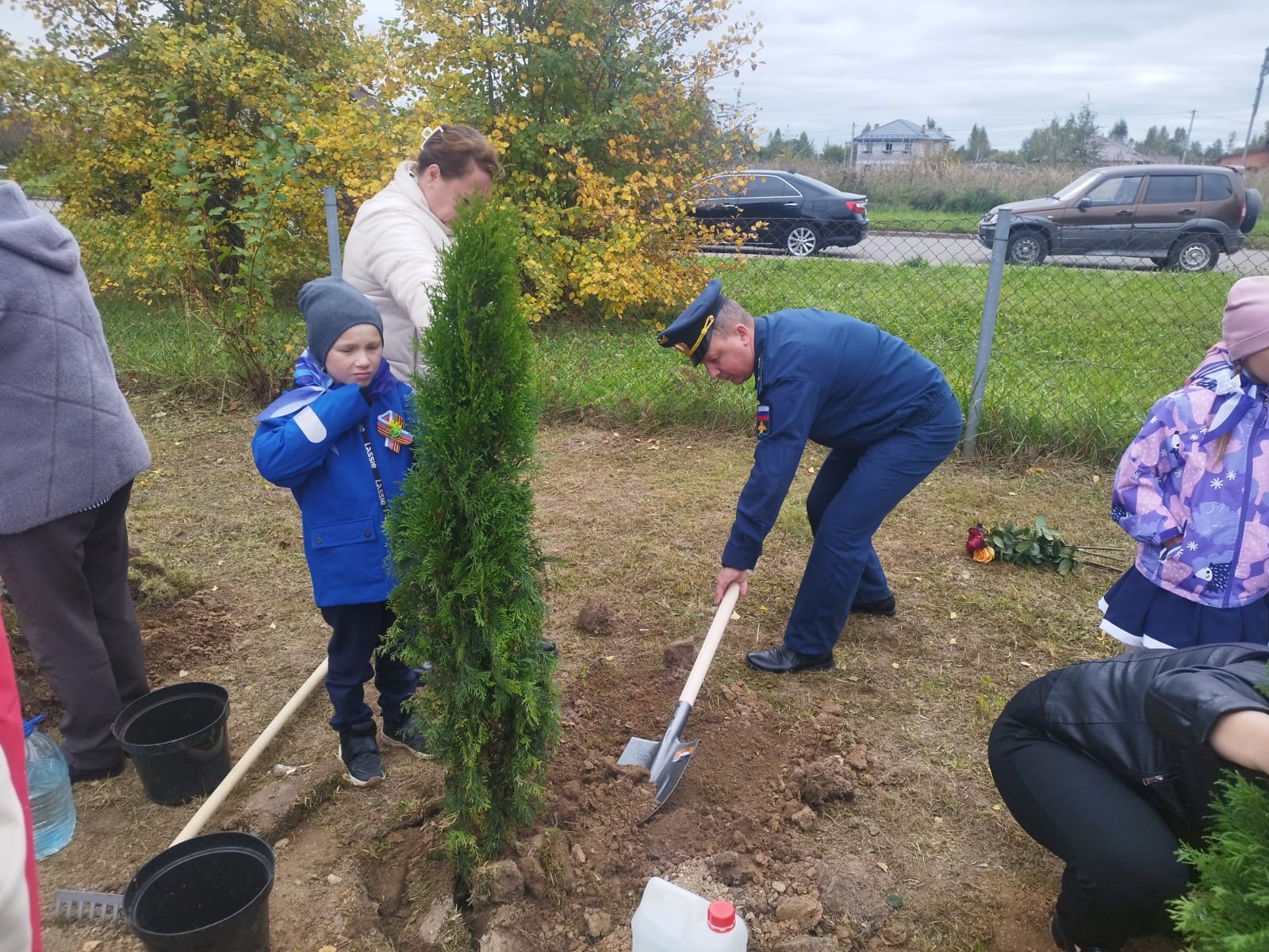 Гости и все желающие вместе с учащимися посадили замечательные туи в знак уважения и памяти нашим Героям!