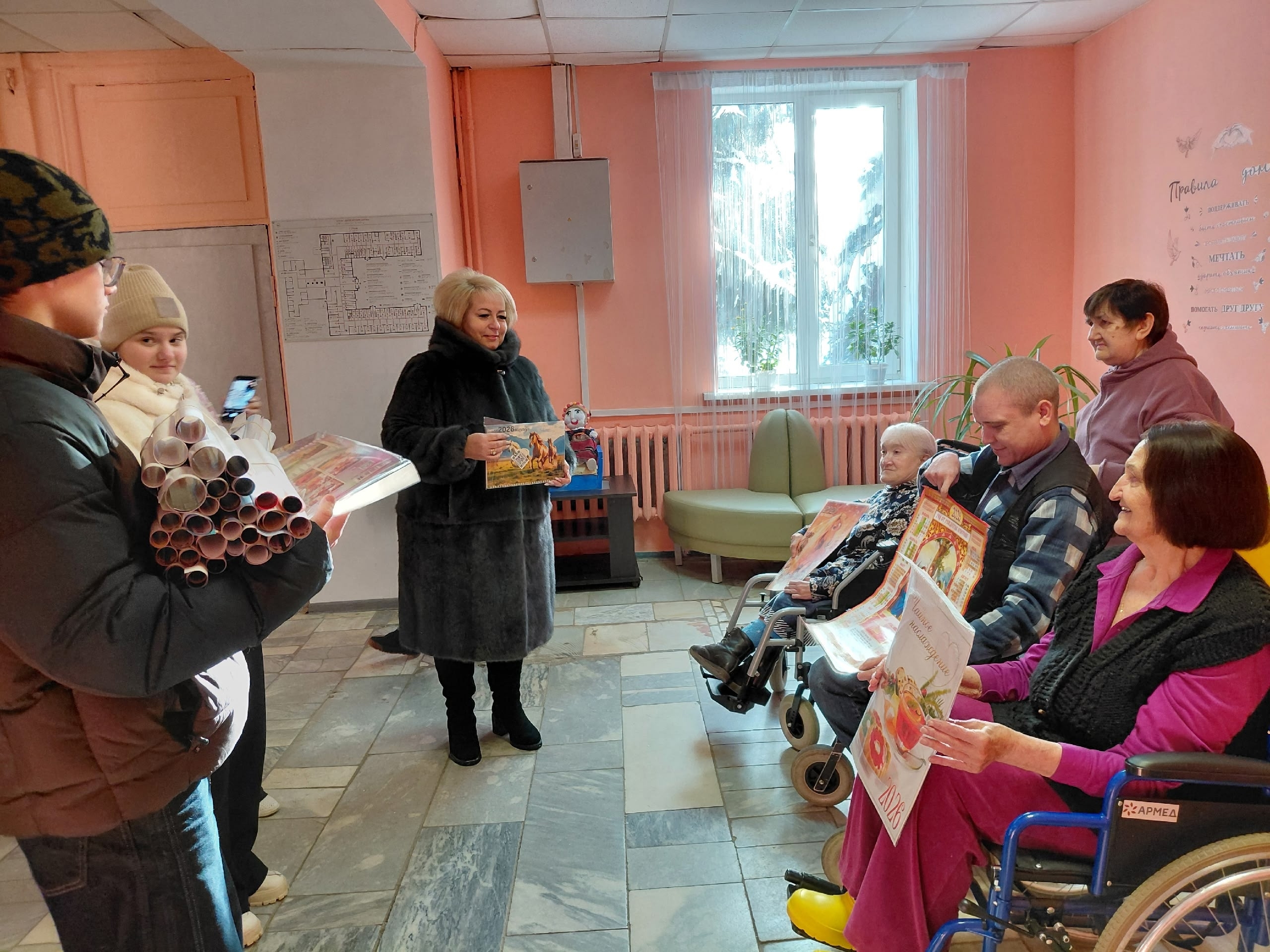 Сегодня вместе с учениками 9 класса директор школы № 10 нашего города, депутат нашего Совета Светлана Александровна Сидорова в рамках благотворительной акции передала жителям Вяземского дома-интерната для престарелых и инвалидов настенные календари.