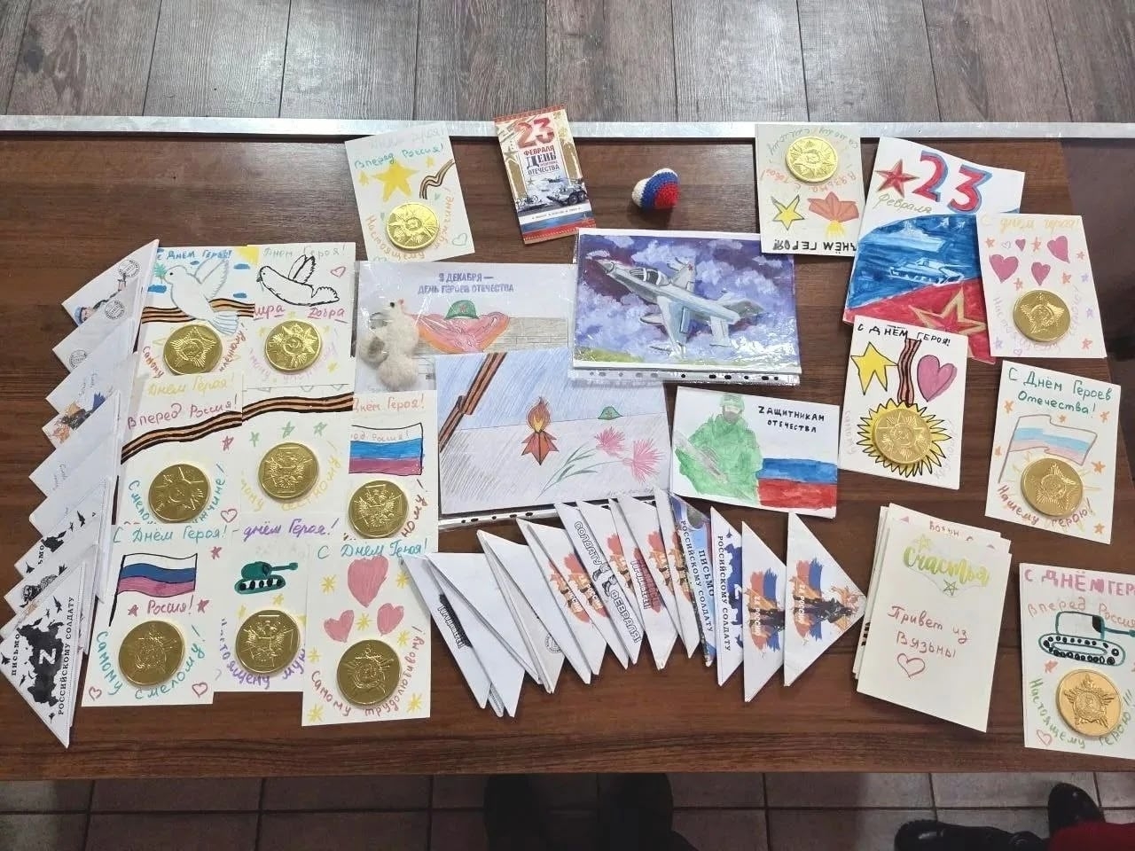 Помимо творческих выступлений, учащиеся передали бойцам гуманитарные подарки: письма, сувениры ручной работы и записанное специально для этого случая аудиопоздравление.